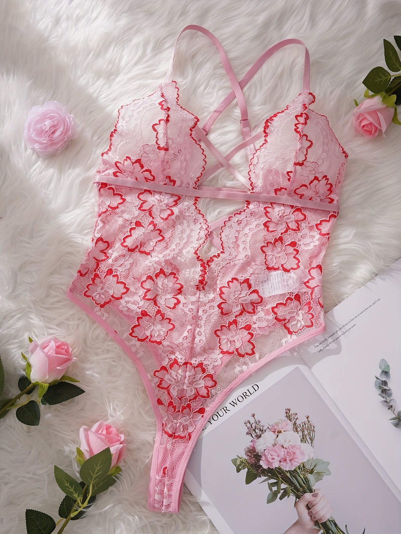 Support: Medium Support, Chest Pad: No, Gender: Female, Details: Contrast Lace, Pattern: Solid color, Applicable People: Adult, Sheer: Semi-Sheer, Type: Bodysuits, Operation Instruction: Hand wash,do not dry clean, Style: Sexy, Other Material: Lace, Material: Lace, Composition: 95% Polyester 5% Elastane, Fabric Elasticity: Micro Elasticity, Weaving Method: Knit Fabric, Item ID: YD66297