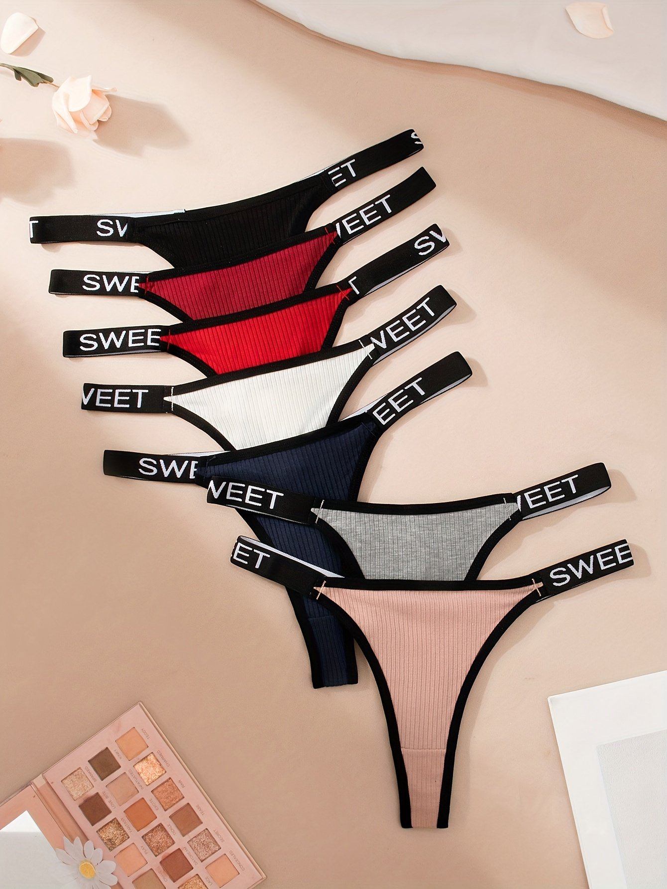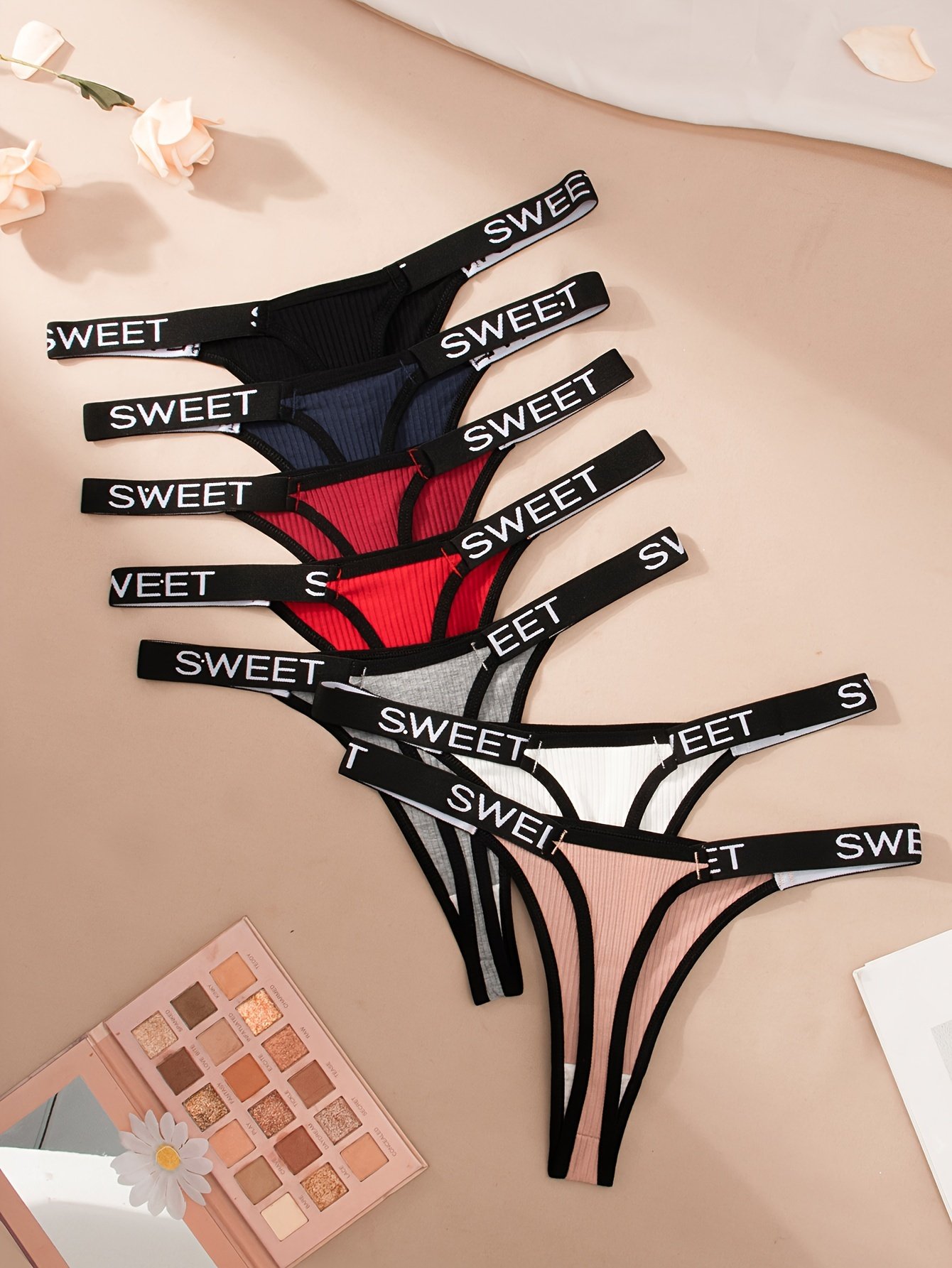 Composition: 75% Polyamide 25% Elastane, Material: Polyamide, Pattern: Solid color, Sheer: No, Type: Thongs/V-Strings, Operation Instruction: Hand wash,do not dry clean, Style: Simple, Number Of Products: 7Pieces, Weaving Method: Knit Fabric, Item ID: KT92453