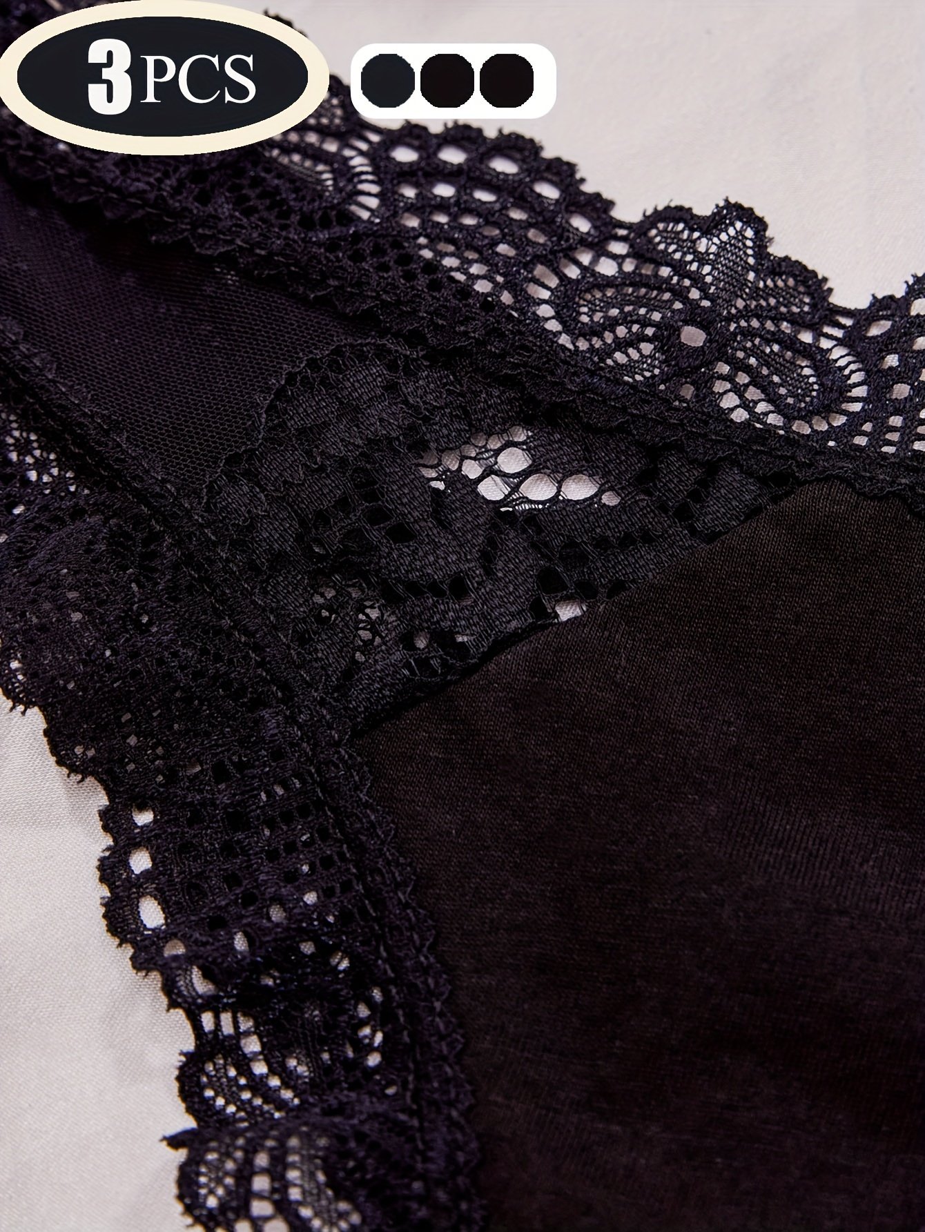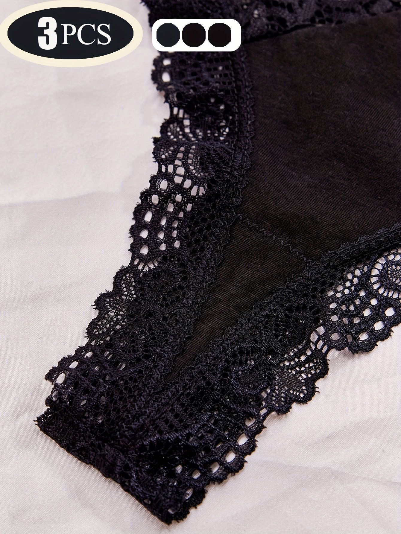 Composition: 90% Polyamide 10% Elastane, Material: Polyamide, Details: Contrast Lace, Pattern: Solid color, Sheer: Semi-Sheer, Type: Thongs/V-Strings, Operation Instruction: Hand wash,do not dry clean, Style: Sexy, Number Of Products: 3 Pcs, Weaving Method: Knit Fabric, Item ID: BH67876