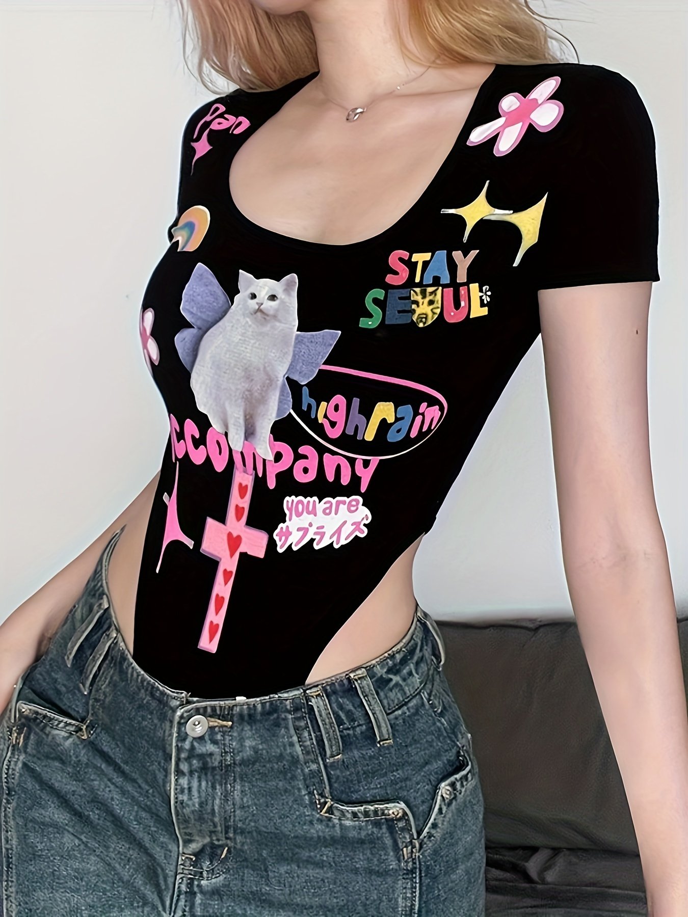 Composition: 95% Polyester 5% Elastane, Material: Polyester, Pattern: Animals, Sheer: No, Season: Summer, Operation Instruction: Machine wash, do not dry clean, Style: Casual, Fabric Elasticity: Mid Elasticity, Printing Type: Random Printing, Weaving Method: Knit Fabric, Collar Style: V-neck, Item ID: DW26504
