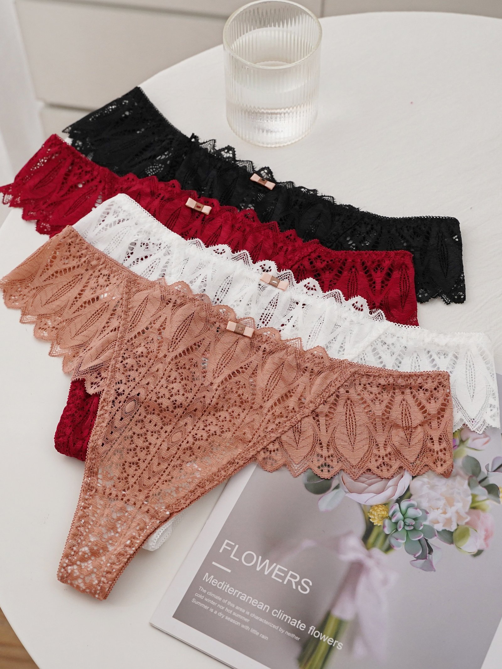 Composition: 90% Polyamide 10% Elastane, Material: Polyamide, Support: Medium Support, Details: Cross Strape, Pattern: Solid color, Sheer: Semi-Sheer, Panty waistline: Drop Waist, Type: Thongs & V-Strings, Operation Instruction: Hand wash or professional dry clean, Style: Sexy, Number Of Products: 4 Pcs, Weaving Method: Knit Fabric, Item ID: MQ28876