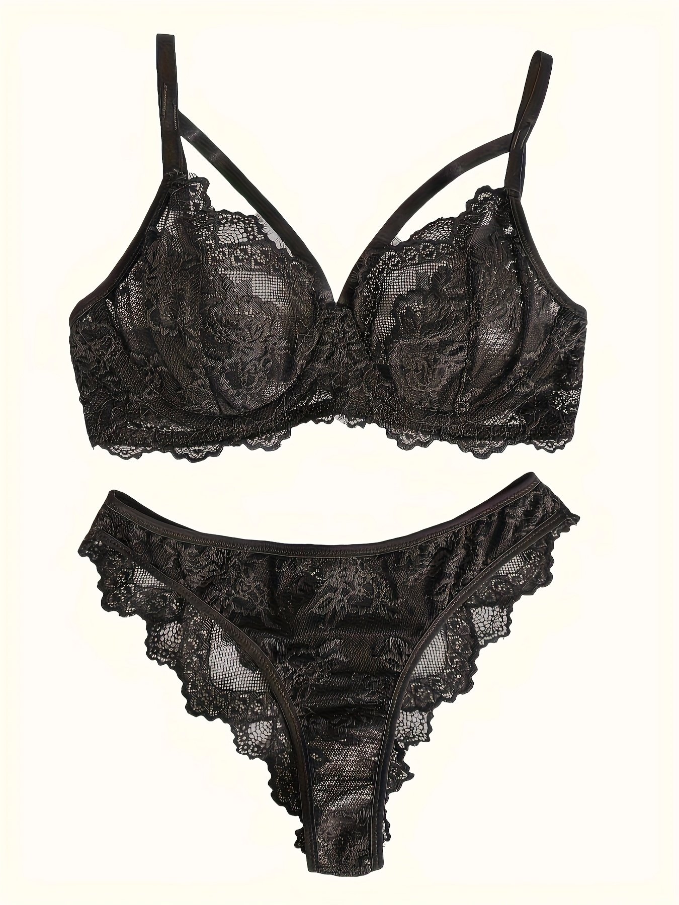 Composition: 94% Polyamide 6% Elastane, Material: Lace, Support: Medium Support, Chest Pad: No Padding, Gender: Female, Details: Contrast Lace, Pattern: Solid color, Applicable People: Adult, Sheer: Semi-Sheer, Panty waistline: Drop Waist, Panty Type: Cheeky, Type: Lingerie Sets, Operation Instruction: Hand wash,do not dry clean, Style: Mature, Weaving Method: Knit Fabric, Item ID: KM43140