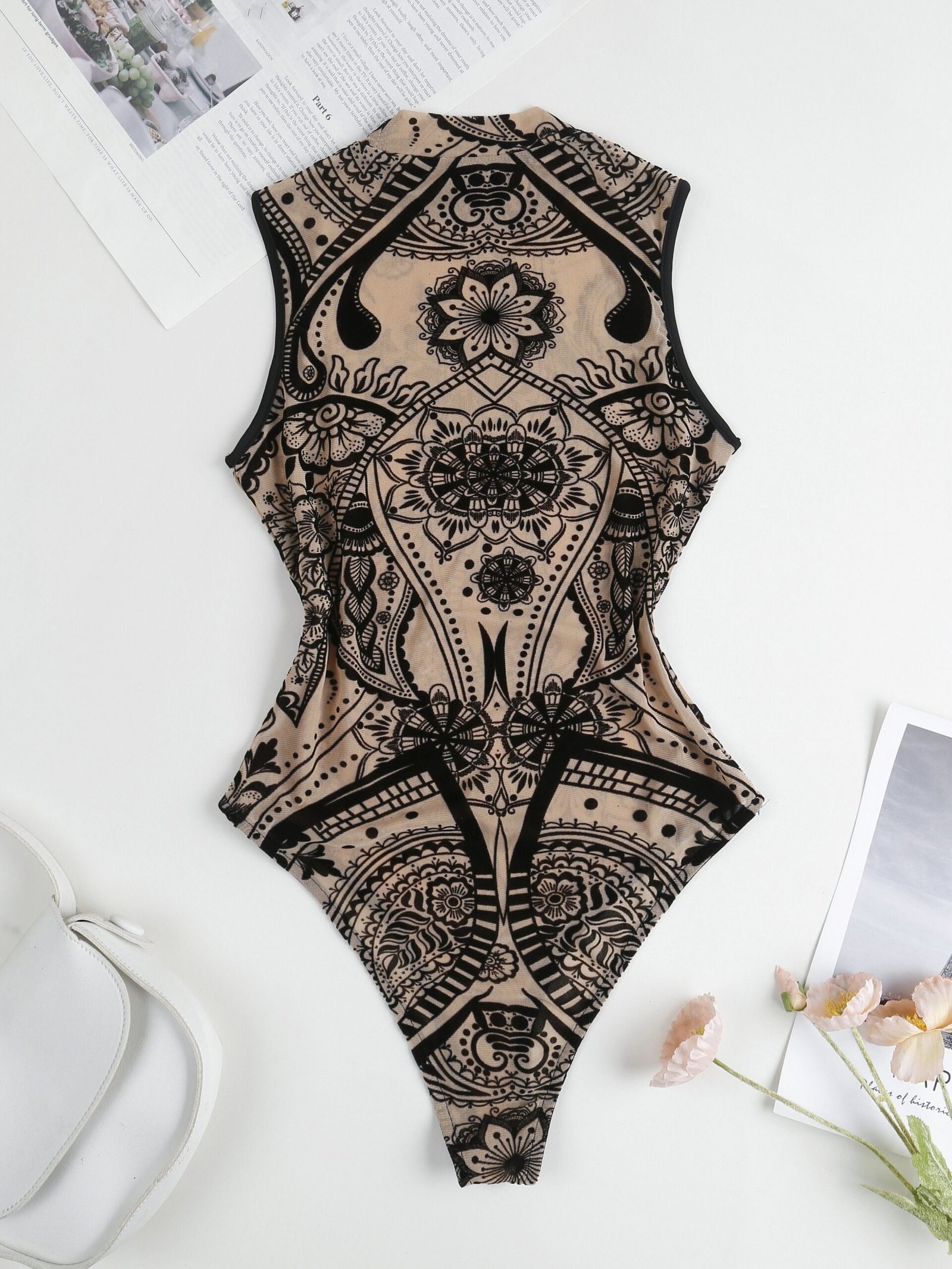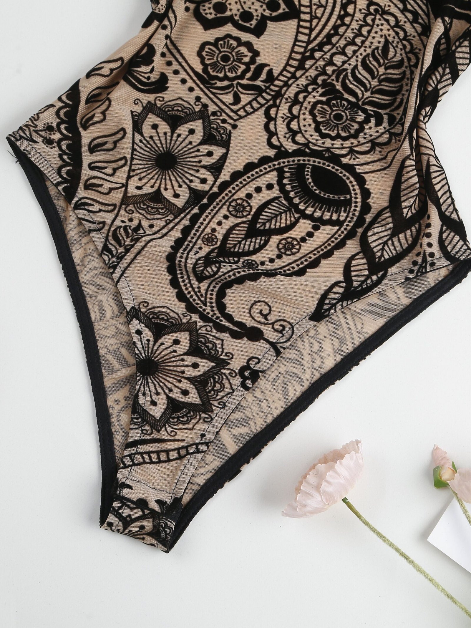 Composition: 95% Polyester 5% Elastane, Material: Dacron and Spandex, Details: Sheer, Pattern: Tropical, Sheer: Yes, Season: All, Operation Instruction: Machine wash, do not dry clean, Style: YOUNG, Fabric Elasticity: High Elasticity, Printing Type: Random Printing, Weaving Method: Knit Fabric, Collar Style: Crew Neck, Item ID: VP131264