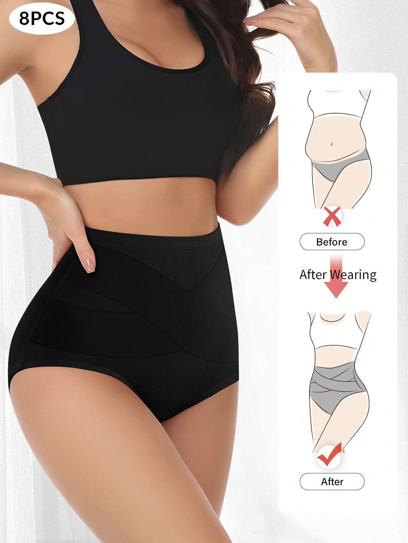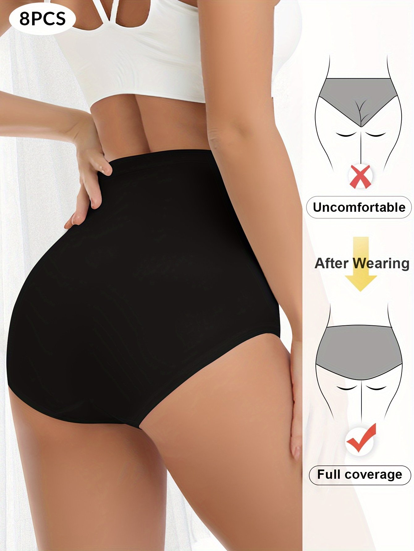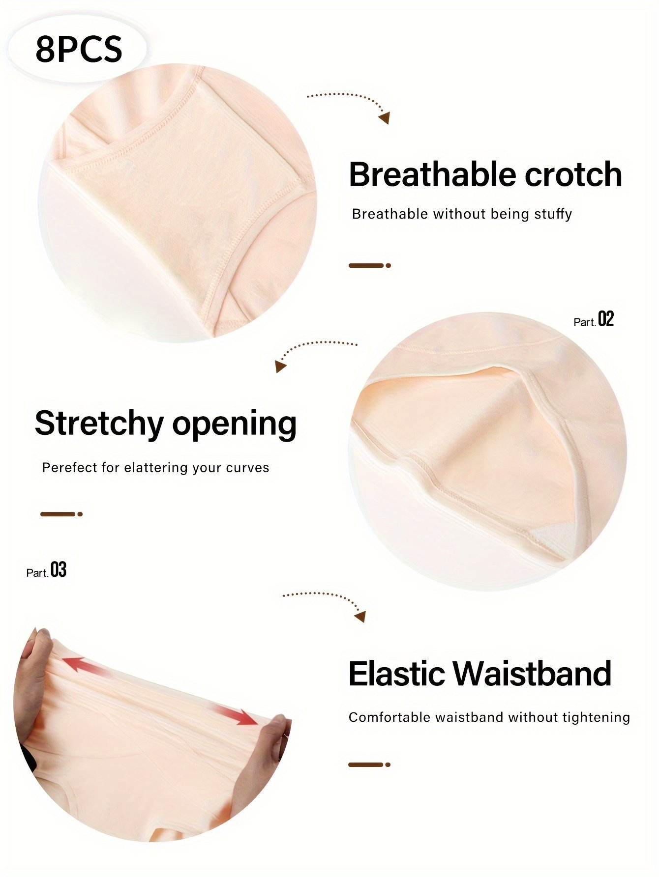 Composition: 92% Cotton 8% Spandex, Material: Cotton, Pattern: Solid color, Sheer: No, Type: Brief, Operation Instruction: Hand wash,do not dry clean, Style: Elegant, Number Of Products: 8Pieces, Weaving Method: Knit Fabric, Item ID: KY121828